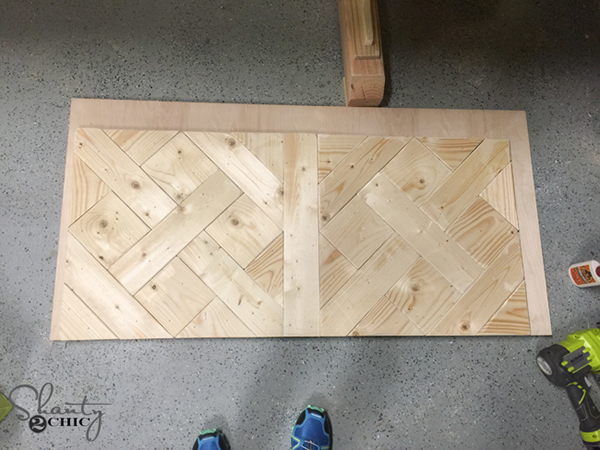 Para las piezas han utilizado una madera blanca, low cost y que resulte fácil de trabajar. Hay que trazar el esquema básico de las piezas que formarán el sobre de la mesa (en este caso alternan unas rectangulares y otras cuadradas), coger las medidas y luego cortar cada una siguiendo esas medidas.