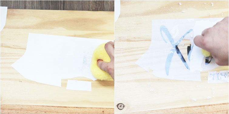 Antes de colocarlos en su sitio, extendemos una mano extra de transfer sobre la madera para nos ayudará a conseguir mejores resultados.
