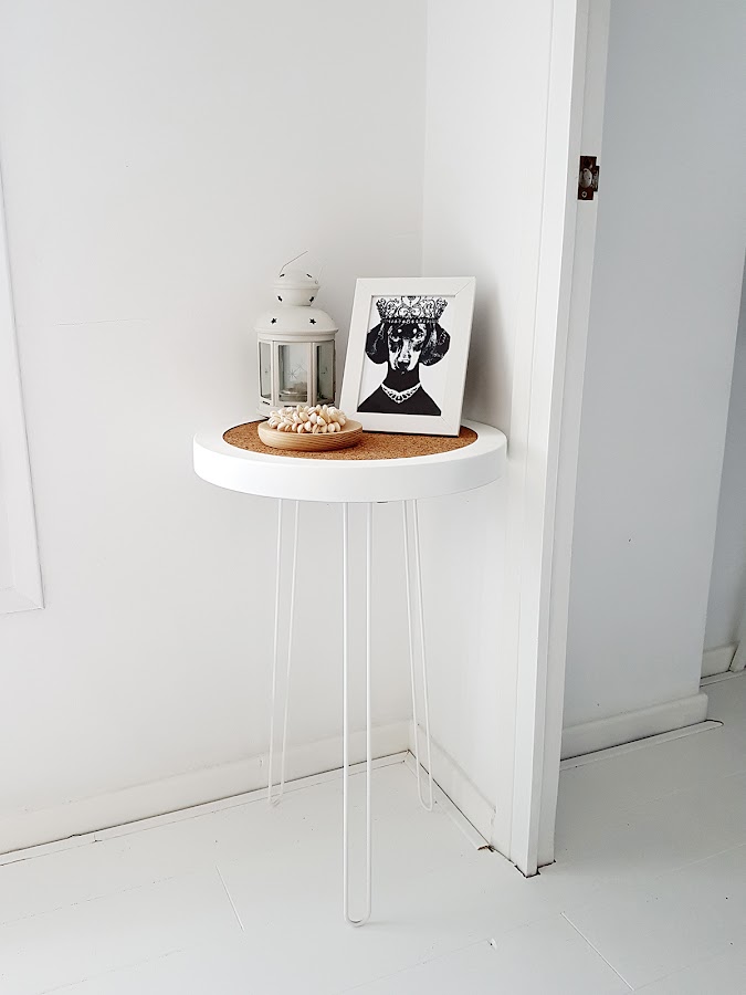 Y ahora, vamos a montar las patas, para ello nos ayudaremos con la silicona caliente, colocaremos cuatro puntos de silicona en cada pata y después lo rellenaremos todo perfectamente para que quede bien fuerte. Lo dejamos secar y listo!!!, ya podemos colocar nuestra mesita auxiliar donde queramos.