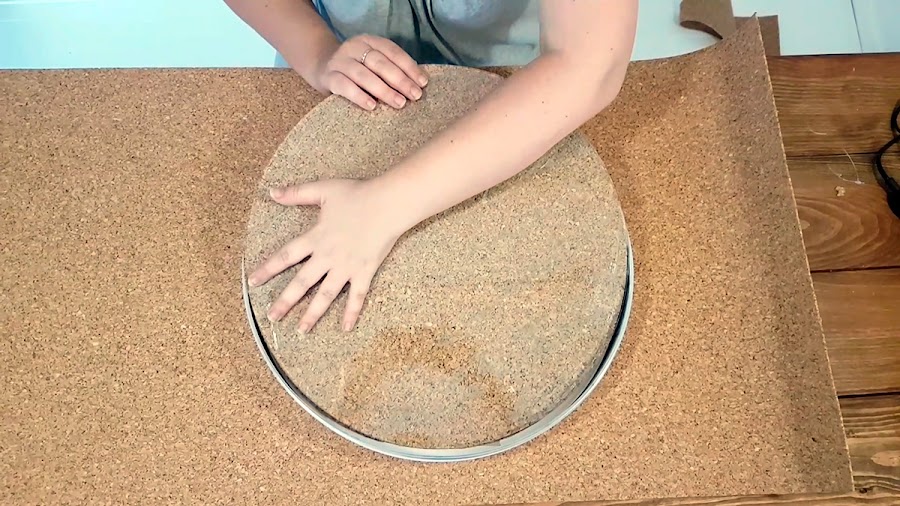 Ahora colocaremos el cristal encima de nuestro corcho o papel y calcaremos la circunferencia. Ahora con la ayuda de las tijeras cortaremos por la linea.