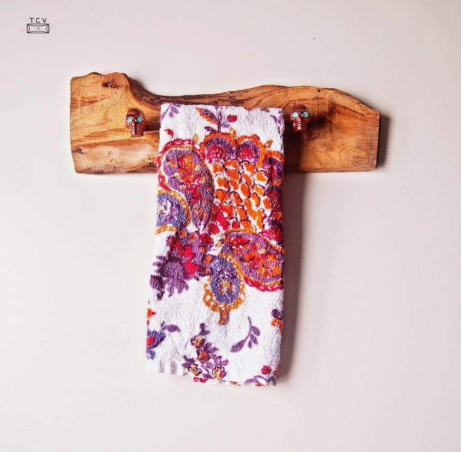 El caso es que tenemos un nuevo trasto en el baño y ahora la toalla no descansa encima de la cisterna del wc sino en mi nuevo y flamante toallero. Tan tan low cost que sólo os va a costar un poco de tiempo unos 4 o 5 eurines en tiradores y un paseo por el monte, ahhh y un poco de cera. Como ya os conté el otro día (click) me he embarcado en la tarea de convertir nuestro especie de trastero que no se sabe lo que es, en lo que verdaderamente es, un señor baño. Pues ya que sigo en mi fase tacañona ahora le toca al turno al toallero que es lo que os traigo hoy.
