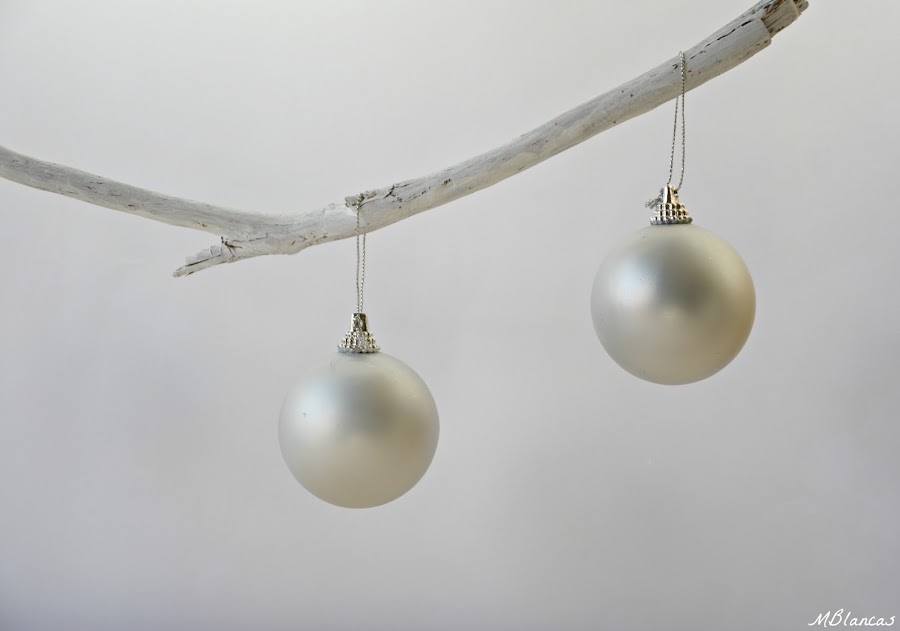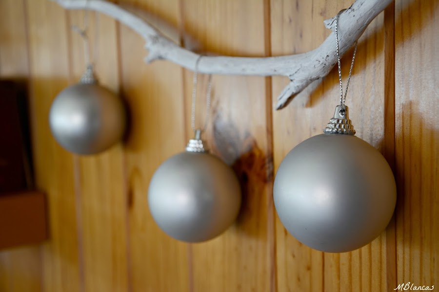 Materiales, una rama, he utilizado la que hice para Diy de otoño y unas bolas de navidad.