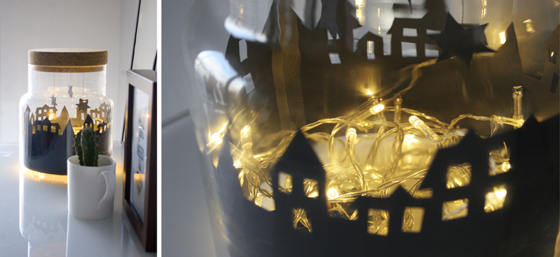 Y por último, sólo nos queda encender nuestra guirnalda de luces, y meterla dentro del bote ¡listo!