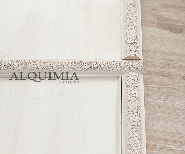 Mientras se seca el betún de judea, pintamos todas las otras molduras y el tablero de madera. Nosotros hemos decidido que sea blanco, pero vosotros podéis hacerlo del color que más os guste o que se ajuste a vuestra deco.