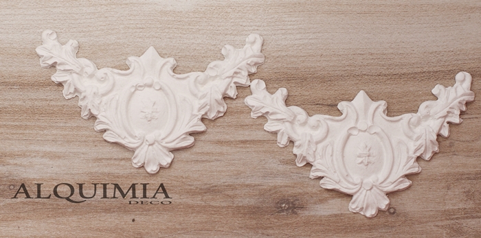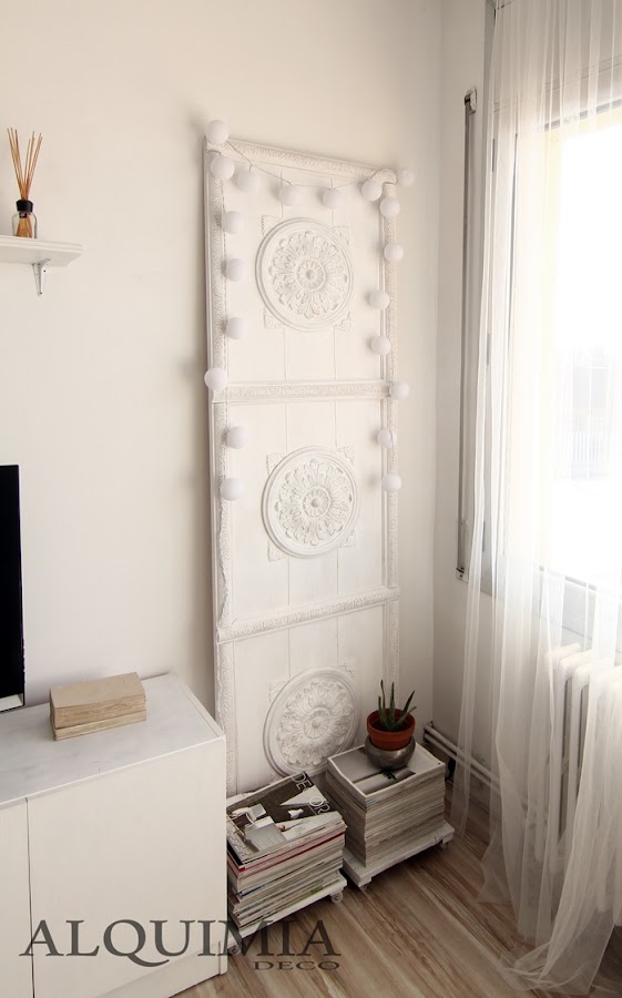Lo podríamos haber dejado así, pero aprovechando que tiempo atrás compré unos moldes para hacer figuras de yeso, cogí una forma que me gustara y las aproveché para terminar de decorar la puerta.