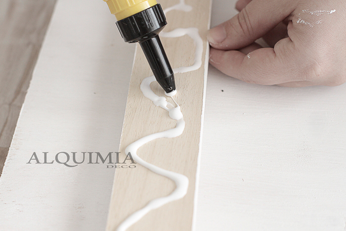Las pegué con un poquito de cola caliente para que se sujetaran bien y luego las pinté de blanco.