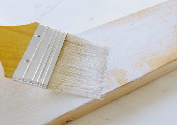 Ahora pintamos la parte inferior y superior de la balda con la pintura chalk paint blanca.