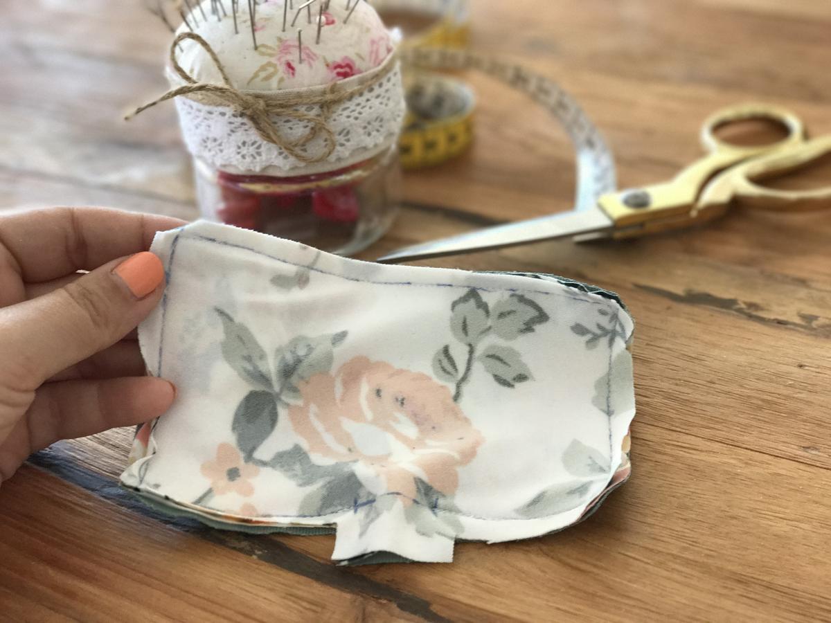 Una vez cosida, cortamos bien los lados para evitar que queden el mínimo de tela posible, y también las puntas para poder darle la vuelta sin problemas.