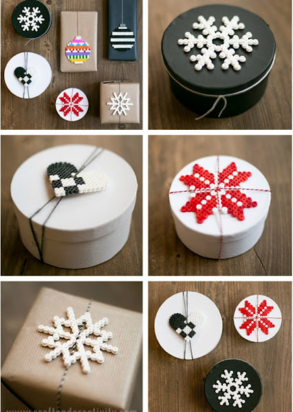 Terminamos con otra idea para Navidad con hama beads ¡Un adorno para el envoltorio de tus regalos! En los últimas navidades he compartido muchas ideas para envolver los regalos, pero sobre todo con papel Kraft. Sobre este tipo de papel os he propuesto colocar diferentes adornos pero nunca había incluido las figuras con hama beads, y estoy pensado que quedarían genial.