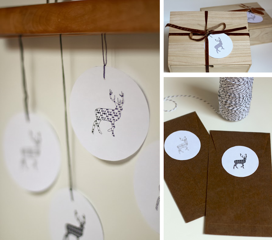 Diferentes medallones imprimibles con dibujos de renos, con los que podrás adornar una pared, tus regalos, paquetes o felicitaciones de Navidad. Basta con descargartelos para crear tus paquetes y adornos con una elegante inspiración navideña