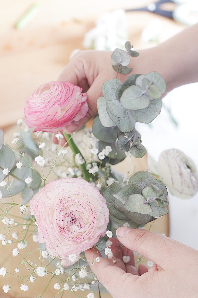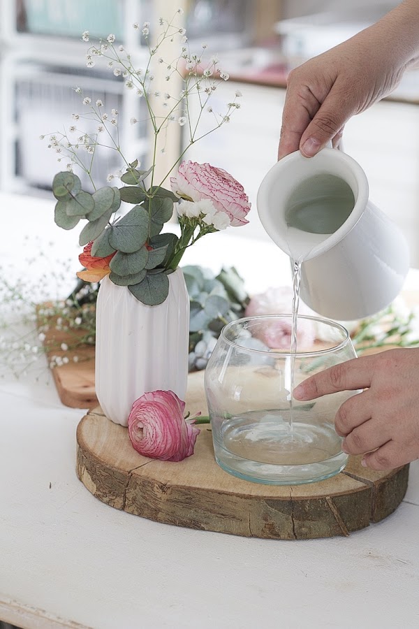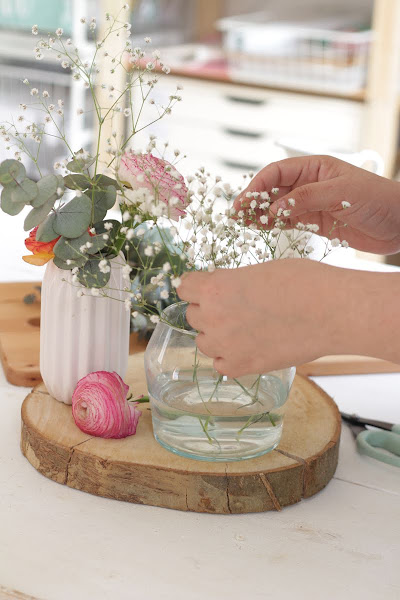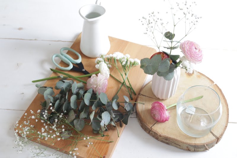 No sé por qué, pero el tema de las flores a veces nos bloquea y crear algo pequeñito es realmente sencillo. Si puedes busca una floristería de confianza cerca de tu casita para comprar algunas flores sueltas, hazte con nuestro ramo de eucalipto preservado y ¡manos a la obra!