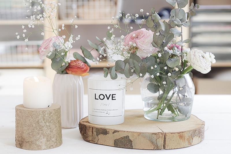 En las imágenes veis que he completado todo con la rodaja de madera de la shop (vuelve a estar disponible que siempre es un best seller) y nuestra velita LOVE que no puede oler mejor.