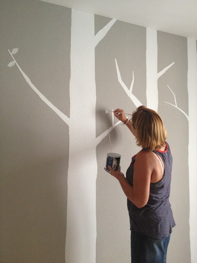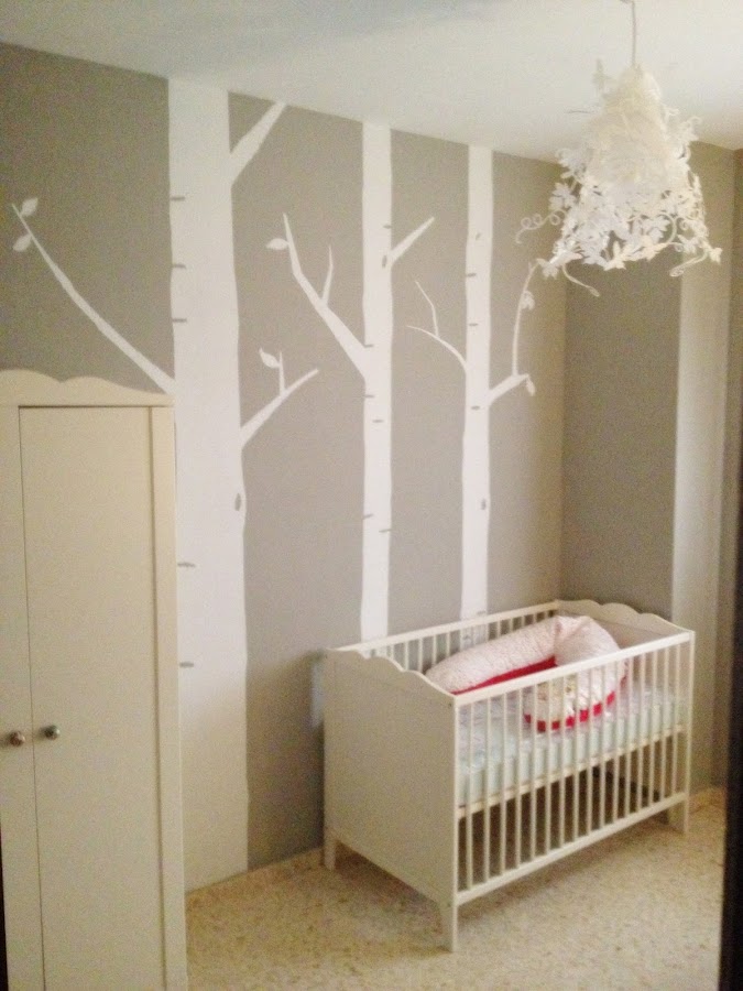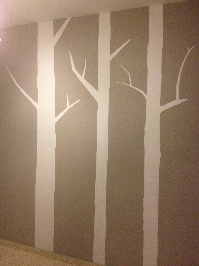 P.D: El mural lo han hecho entre mi marido, que ha resultado ser todo un artista y mi madre, que se encargó de dibujar las hojas y los nudos de los troncos, ya que mi barriga me impedía hacer nada!