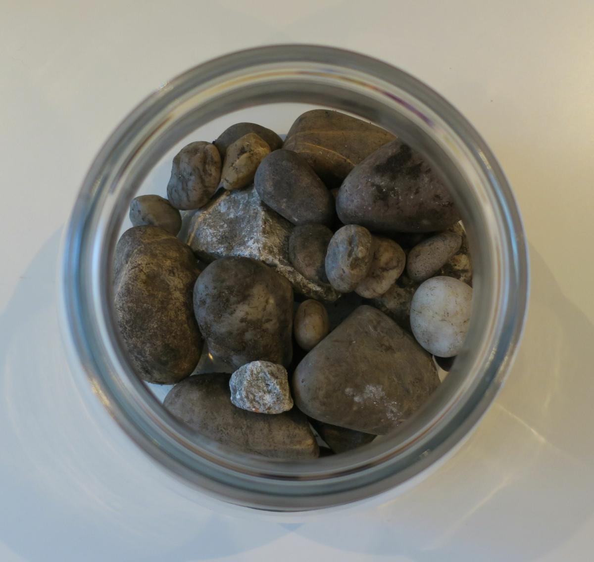 Después, utilicé esta gravilla negra de Ikea para rellenar los huecos más pequeñitos, creando así un contraste con los tonos claros de las piedras más grandes.