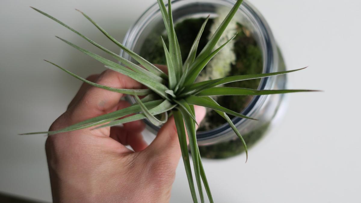 Después, coloca la planta aérea encima. Yo elegí esta tillandsia que compre en Amazon aquí.