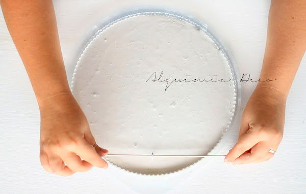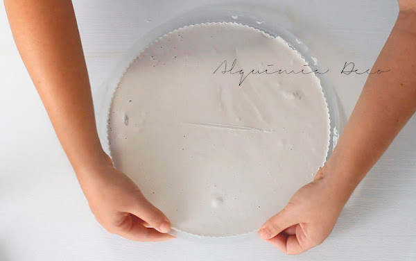 Después verteremos la mezcla dentro de nuestra base de pizza. Tranquilos!, si os quedáis corto de yeso, podéis hacer más e ir rellenando el molde poco a poco.
