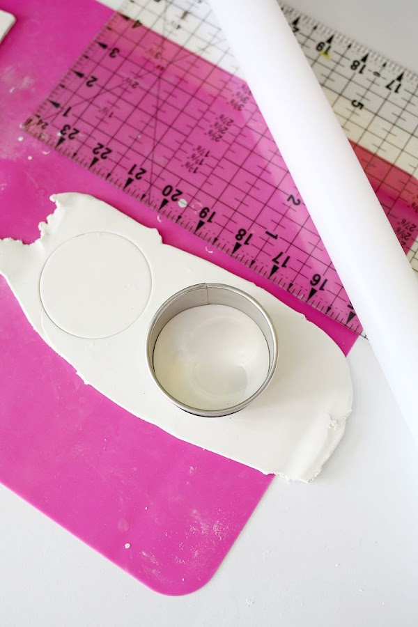Estiramos un poco más de arcilla del mismo grosor y cortamos una pieza con el cortador redondo.