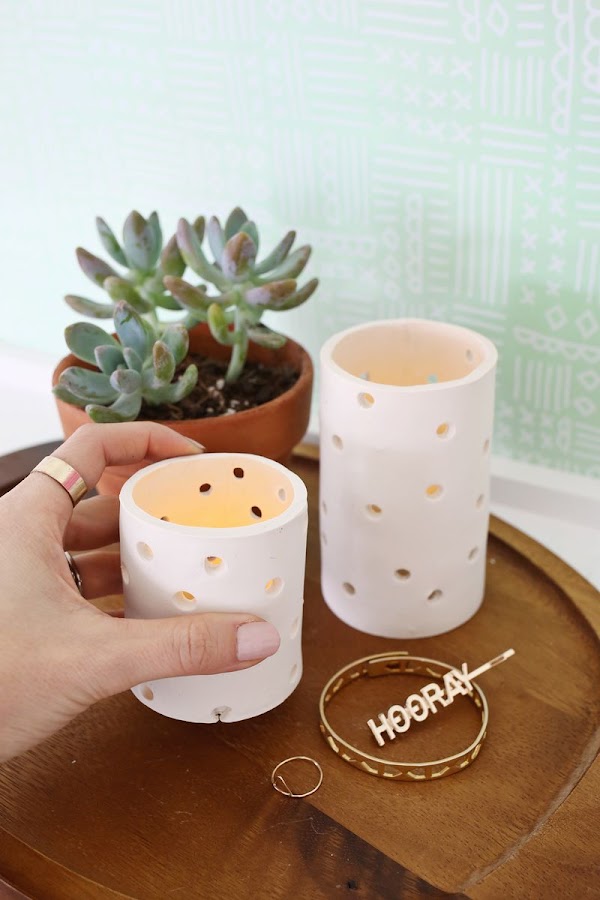 Por último, horneamos o dejamos secar la arcilla según las instrucciones del paquete y listo! Ya tenemos nuestro portavelas terminado para colocar dentro una vela. Ahora sólo queda preparar una cenita romántica para estrenarlo...