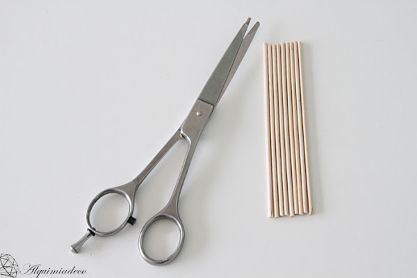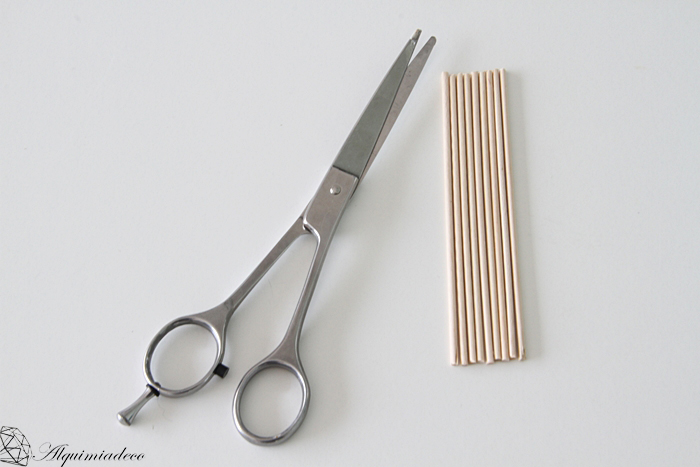 Lo primero que tenemos que hacer es cortar nueve palos a la medida que más nos gusten. Los mios hacen 12 centímetros, pero eso dependerá de lo grande que los queráis.