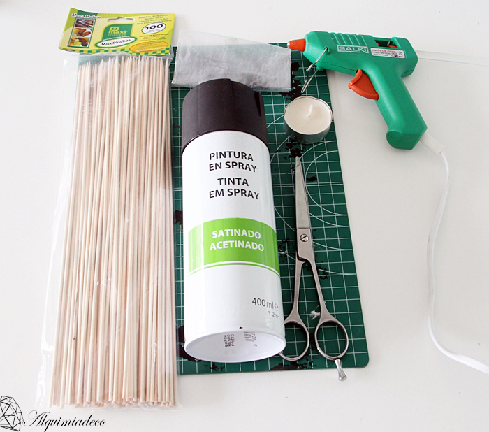 Una vez todo encolado y seco, pintaremos nuestros bastoncitos del color que queramos, yo he escogido negro porque ya sabéis que es uno de los colores que predomina en mi casa.