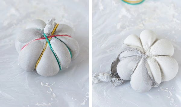 Empezamos creando la mezcla con agua y escayola. También podemos hacerlo con microcemento tal y como os enseñé en este post de calabazas de cemento.