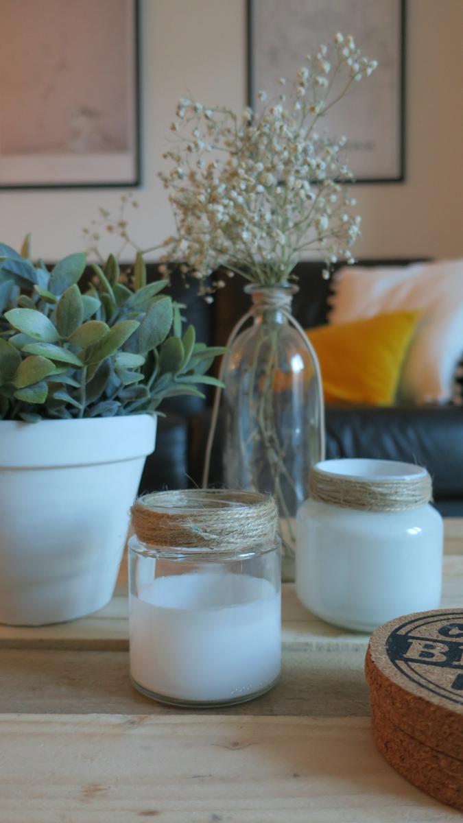 Ya está el segundo portavelas listo. Coloca la vela en el interior y disfrútalo. Puedes poner una vela más grande que la que he elegido yo, dependiendo del tamaño del tarro.