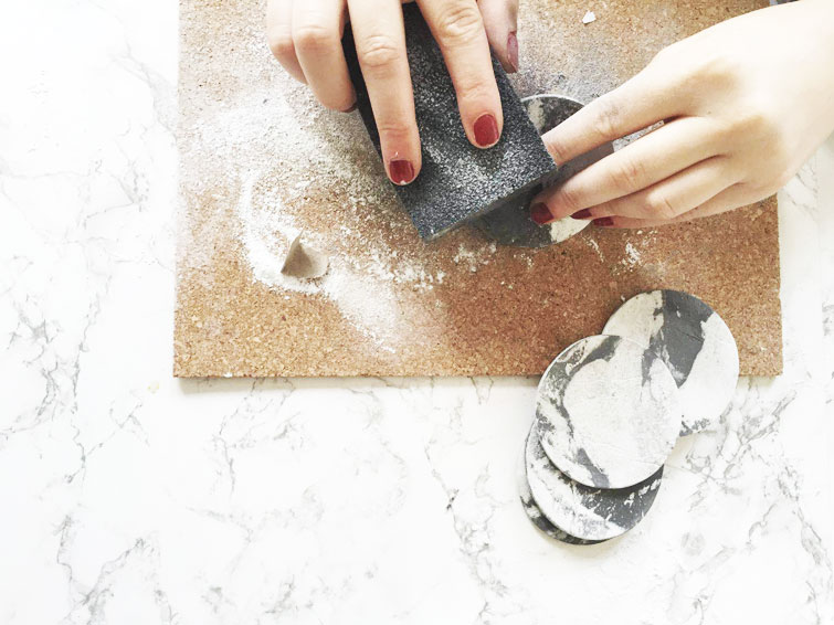 El aspecto es tal cual lo veis en las imágenes, y tienen un acabado a mármol, de lo más bonito! Para las fotos y poder enseñároslo, he puesto los posavasos con galletas, pero lo cierto es que este tipo de material no vale para utilizar con comida. De hecho, aunque en ese caso yo no lo he hecho, más adelante compartiré otros DIY con porcelana fría donde les doy una fina capa de barniz mate en spray para que no suelten nada de polvillo y queden bien terminadas las piezas.