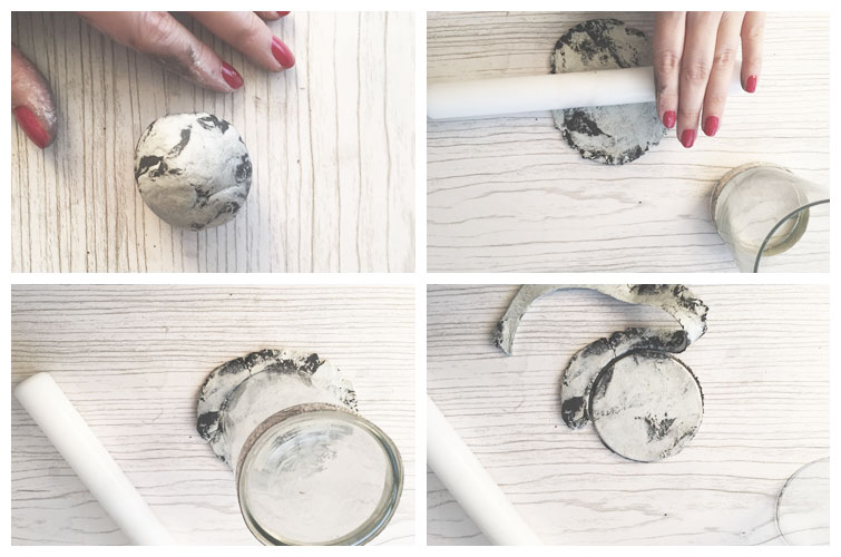 Cuando la tengamos a punto y con el grosor que queremos, con la ayuda de un cortador (un vaso de una medida que nos venga bien, por ejemplo) vamos dando forma a nuestros posavasos.