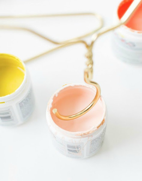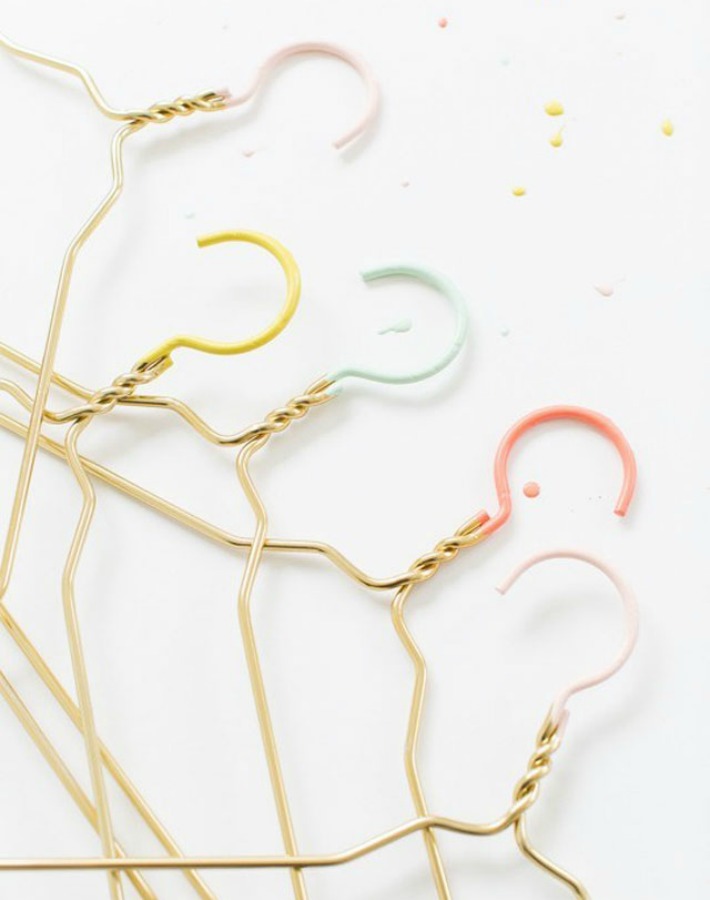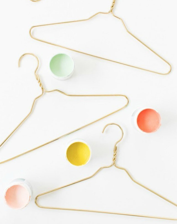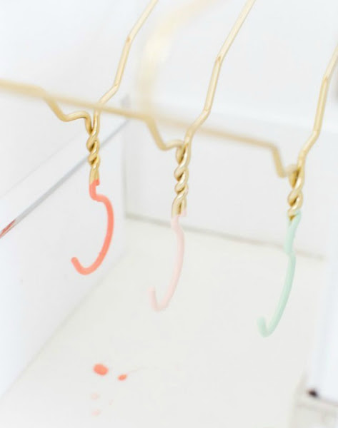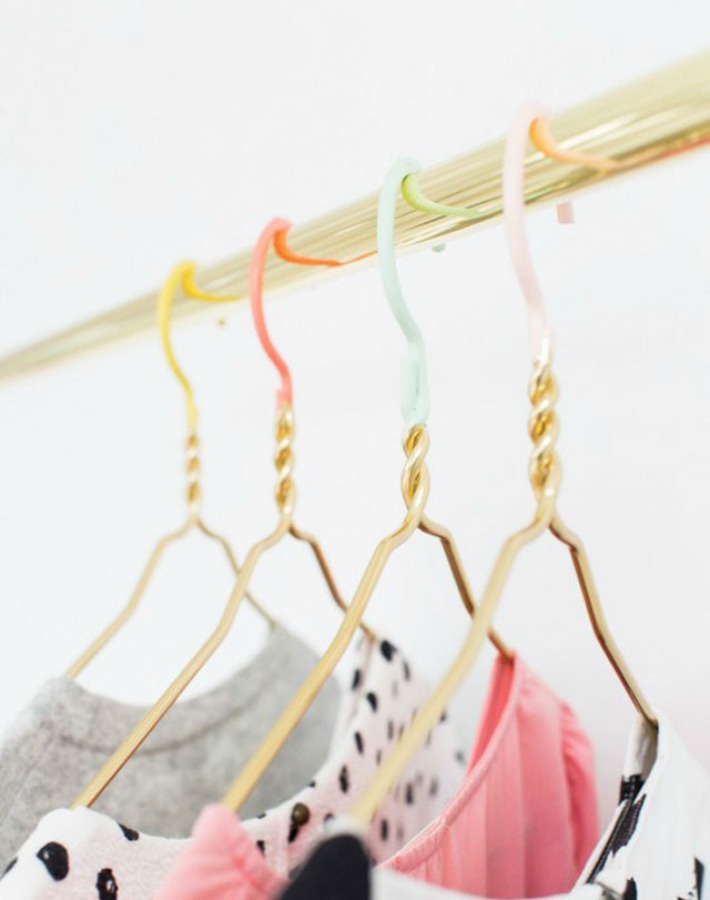 Una vez tenemos nuestras perchas radiantes y doradas, aplicamos el toque de color pastel.