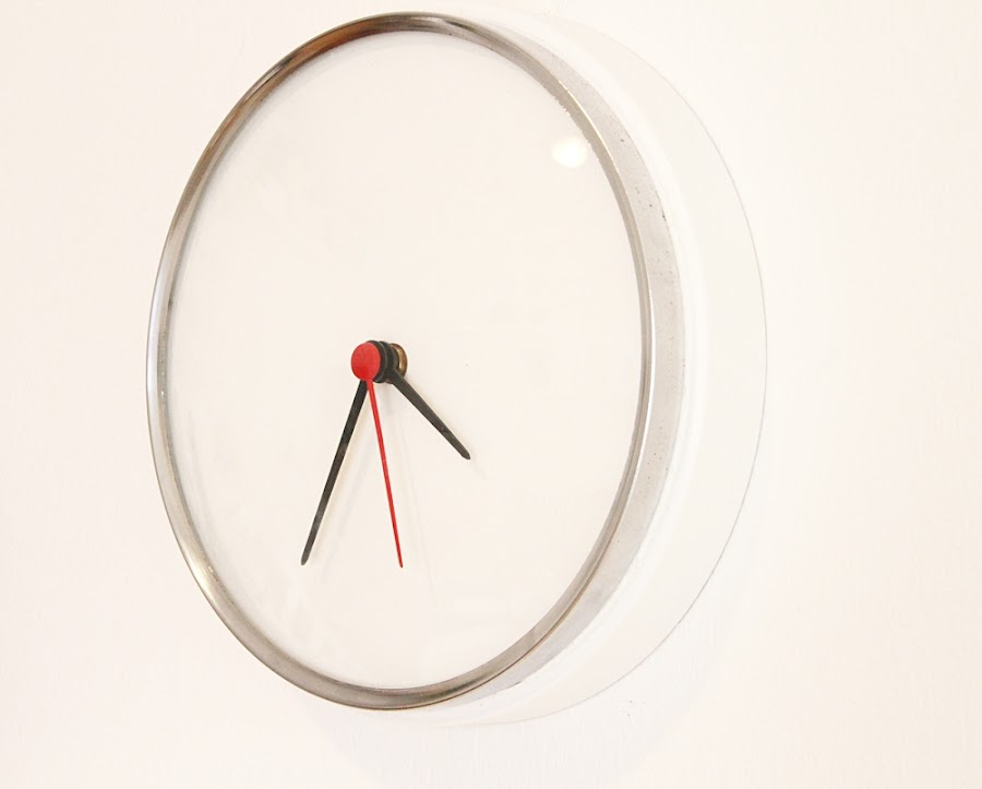 Y por último solo queda montar el reloj a la inversa de como lo hemos desmontado. Primero el mecanismo, después las agujas, el cristal y por último el aro que sujeta el cristal. Y ya lo tenemos listo para colgar en la pared.