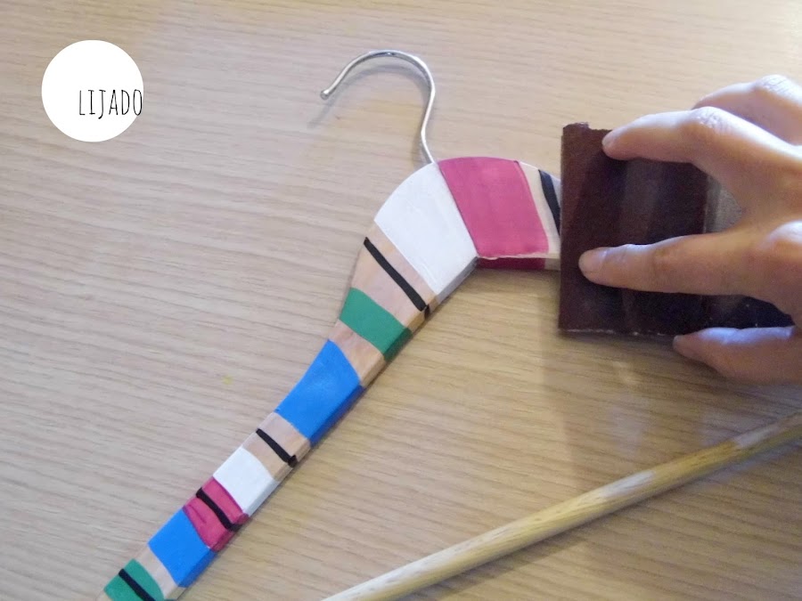 Te recomiendo lijar las perchas lo primero, sino la pintura no agarrará bien. Límpialas y sécalas antes de pintar.