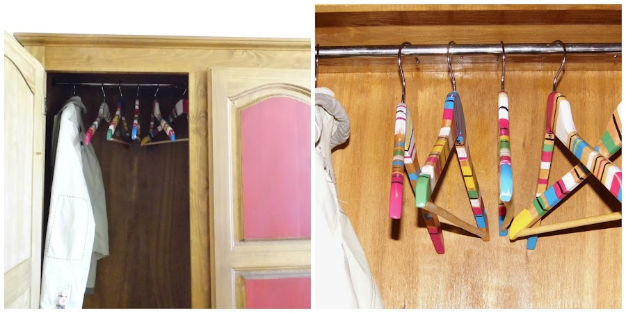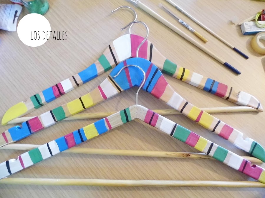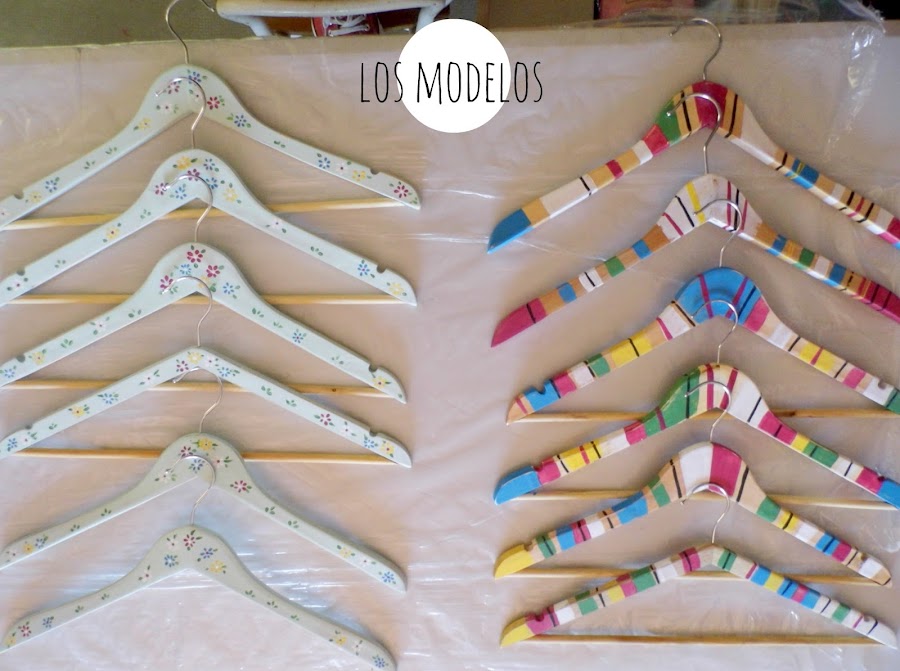 Hoy he empleado una técnica, la pintura, y he hecho dos modelos muy diferentes. Dentro de unas semanas haré las perchas de las otras dos habitaciones con otra técnica y dos modelos diferentes, para darte ideas de cómo decorar las de tu casa.