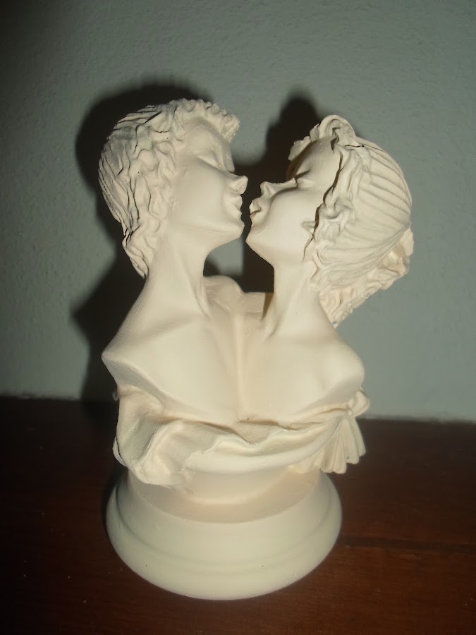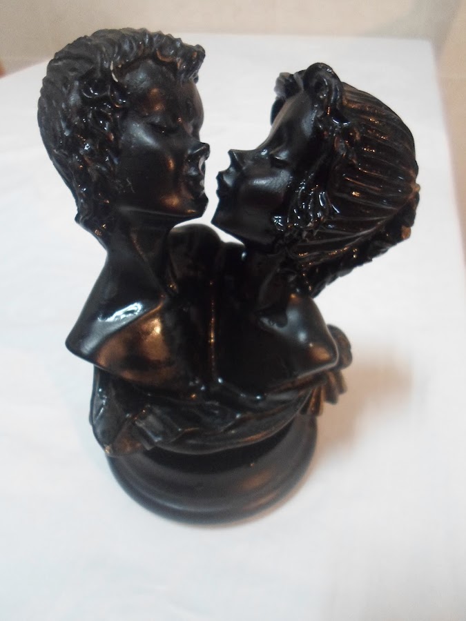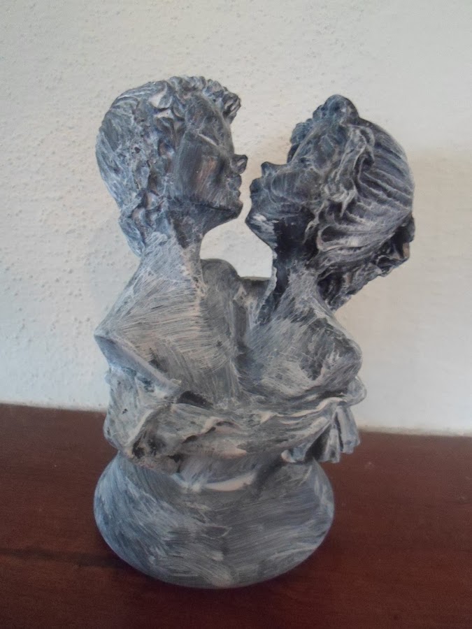 Hoy le tocó a esta bonita figura de una pareja. Cuando era muy joven, me encantaba, porque para mí representaba el AMOR. La di por perdida, cuando de pronto la volví a encontrar en el trastero. Cierto es que hoy día su color no iba con mi decoración actual, así que decidí darle otro toque.