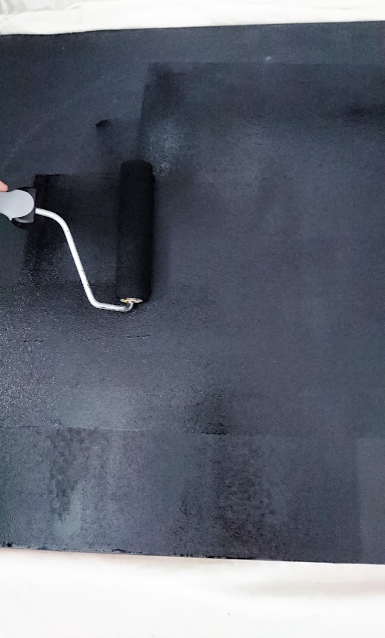 Lo siguiente fue ponernos manos a la brocha (o al rodillo, en este caso). Aplicamos tres manos de pintura magnética para conseguir un mayor efecto imán. Cubre mucho y cunde mucho. Un solo bote nos bastó para las tres manos y sobró un poquito.