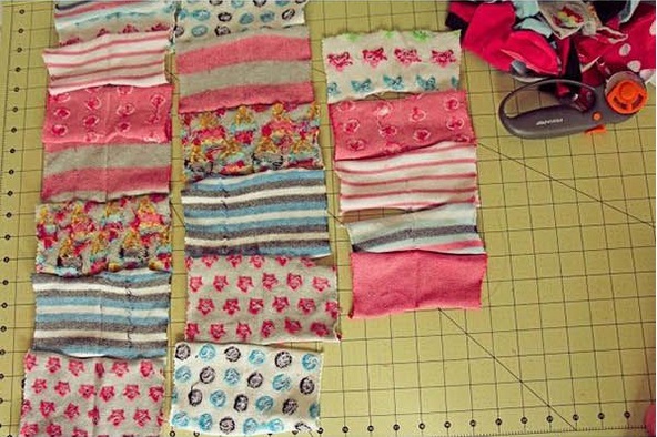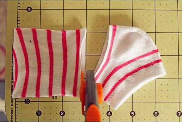 1. Corta los calcetines de tal manera que te quedes con la parte central del mismo,