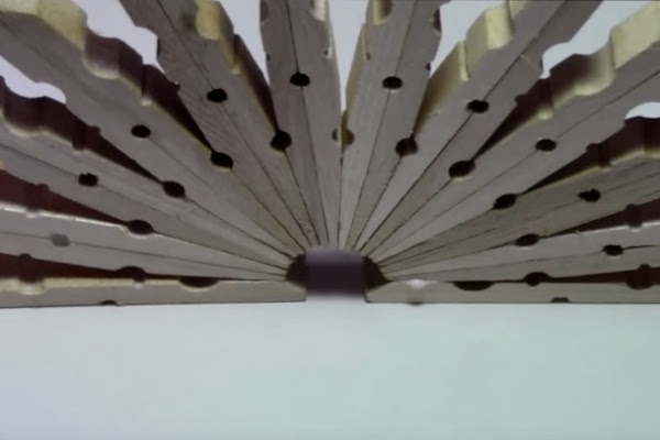 4. Volteamos la pinza y pegamos la otra al lado, de tal manera que queden bien unidas las puntas. Hacemos esto con las diez pinzas que habíamos preparado. Las puntas se quedarán formando un semicírculo.