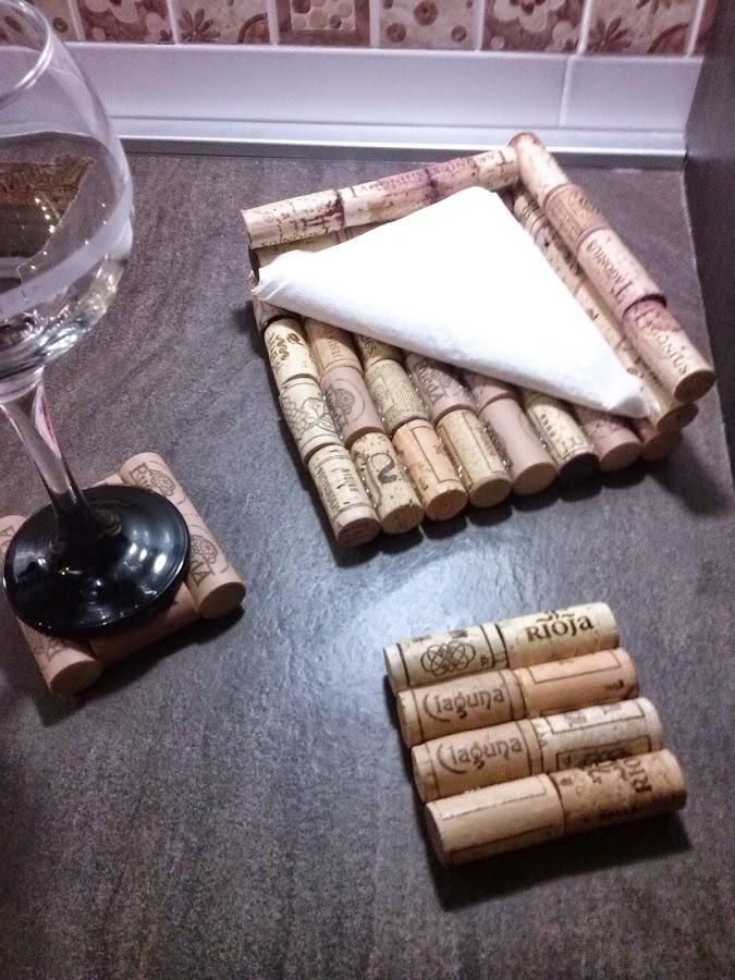 Espero que os gusten. Ambos complementos, muy baratitos de preparar, son un buen complemento para decorar tu mesa en una velada. Estoy de nuevo juntando más corchos para preparar un salvamantel. Próximamente os le enseñaré.