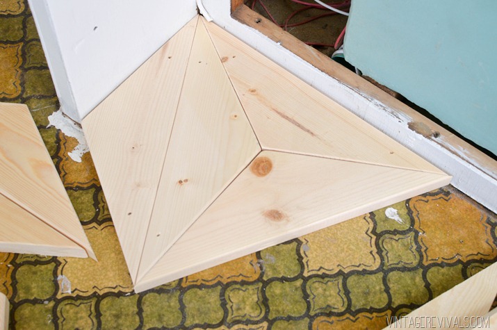4. Al llegar a la pared contraria vamos a hacer una plantilla en papel del tamaño del triángulo para poder ajustar y calcular lo que tenemos que cortar.