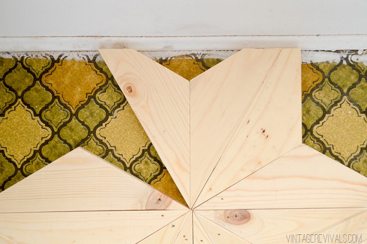 2. Cortamos triángulos usando la ingletadora para asegurarnos que todos nos quedan de la misma medida (120º, 30º y 30º)
