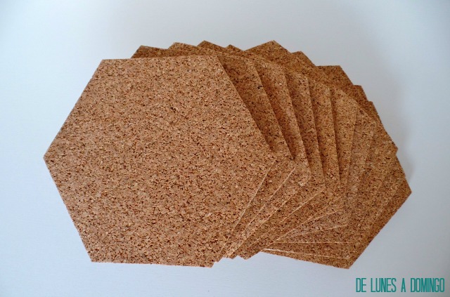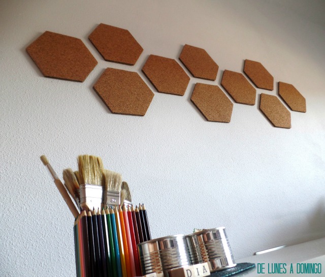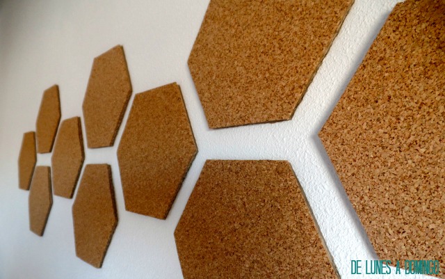 Hice 10 hexágonos iguales, pero ya sabes que en la variedad está el gusto y podrás explayarte tanto como quieras con tu tablón personalizado. Distintas formas, tamaños, en mayor o menos extensión de pared...