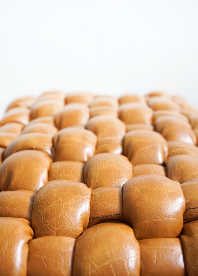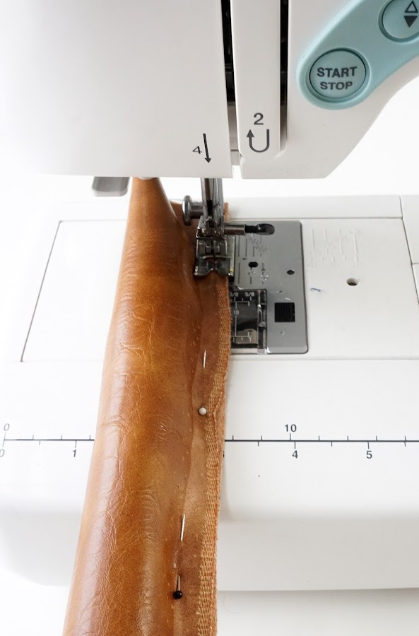 1) Empezamos cortando tiras de la tela de cuero, las rellenaremos de espuma y la coseremos con la máquina de coser.