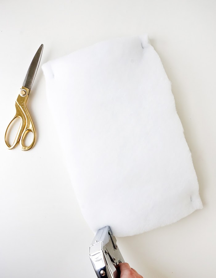 3) En la otra cara de la madera, ponemos un poco de relleno con la ayuda de la grapadora.