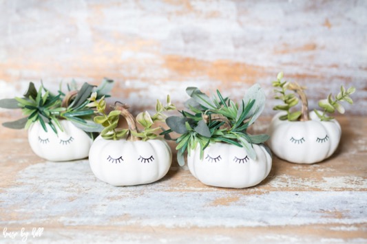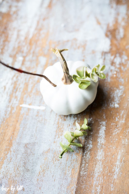Solo vas a necesitar las calabazas, chalk paint y ramitas o hojas. En este punto puedes optar por alguna que hayas recogido tú o eucalipto que siempre huele muy bien. Luego pintar los ojos para darle un aire más naif y ¡listo!