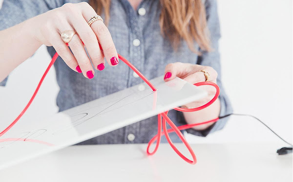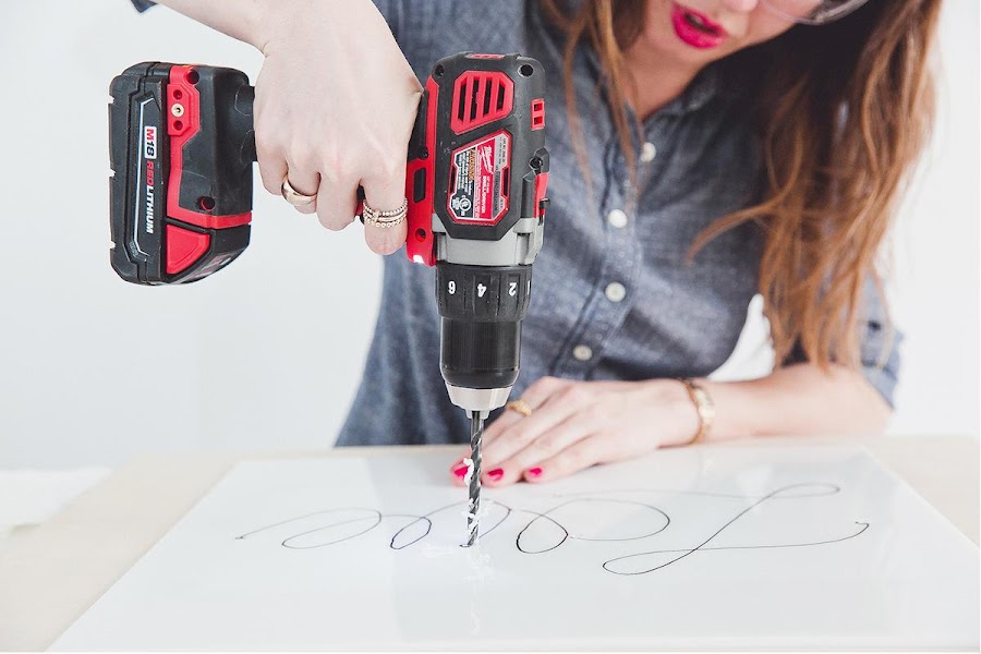Copia con el rotulador tu frase, de forma que vayas viendo donde necesitaras perforar agujeros para ir formando tu frase con el neón. Obviamente necesitarás uno al principio y otro al final. Puedes probar previamente con un folio y una cuerda, de modo que sepas de antemano como va a quedar más limpio y tengas un resultado final sobre el que trabajar. Recuerda que la palabra o frase va de corrido, no hay cortes en el neón.