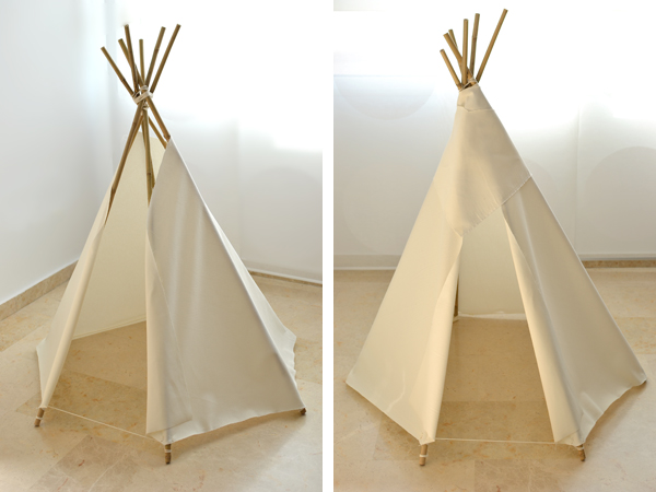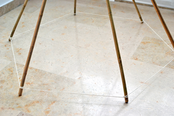 Anudamos la base del tipi, con una separación de 54 cm, para darle estabilidad.