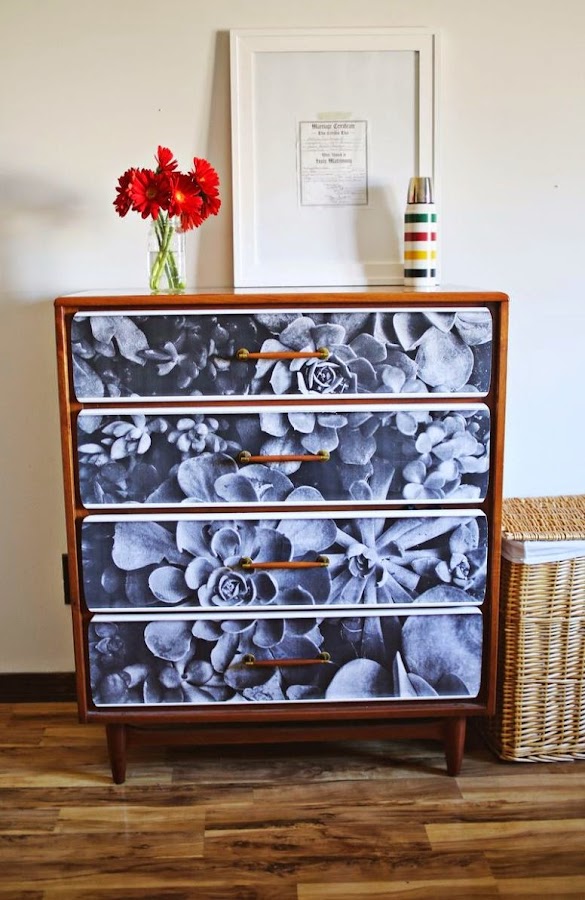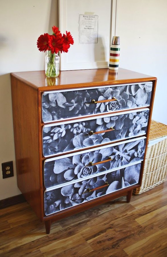 ¿Tienes una cómoda o cajonera aburrida y quieres cambiarla rápida y fácilmente? Pues este proyecto de A Beautiful Mess te va a interesar, porque sin lijar ni pintar, el papel puede darle una nueva cara a tu pieza y conseguir que tu casa te guste más todavía. Y es tan fácil como conseguir los siguientes materiales: