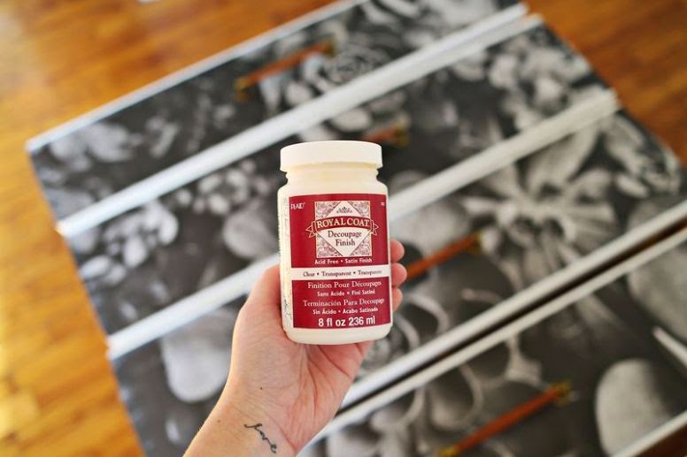 Puedes acabar la superficie con una o dos capas de acabado para decoupage y asegúrate que esté bien seca antes de colocar los tiradores de nuevo.