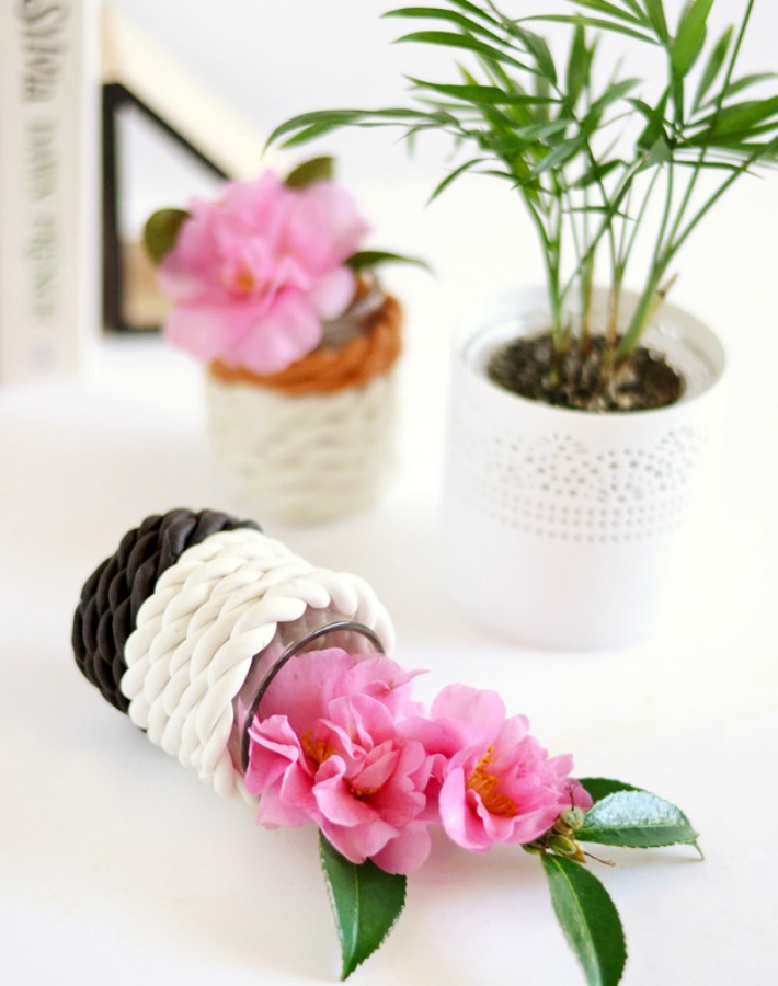Podemos crear otros floreros cambiando los colores de la arcilla y de esta manera crear una bonita composición.