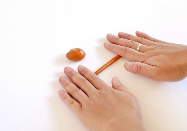 1.-Comenzamos cortando dos trozos iguales de arcilla polimerica en color marrón ( es el color que ha utilizado el autor de esta idea fall for diy). Los amasamos y hacemos dos barillas delgadas intentando que sean de largura y anchura lo mas semejante posible.