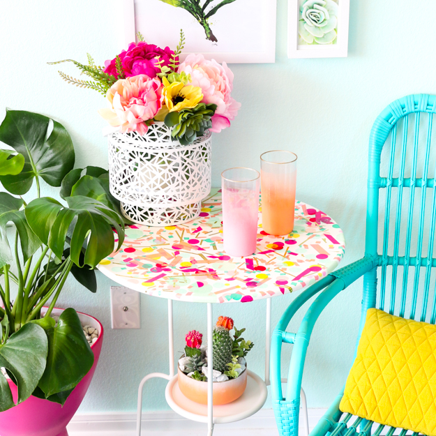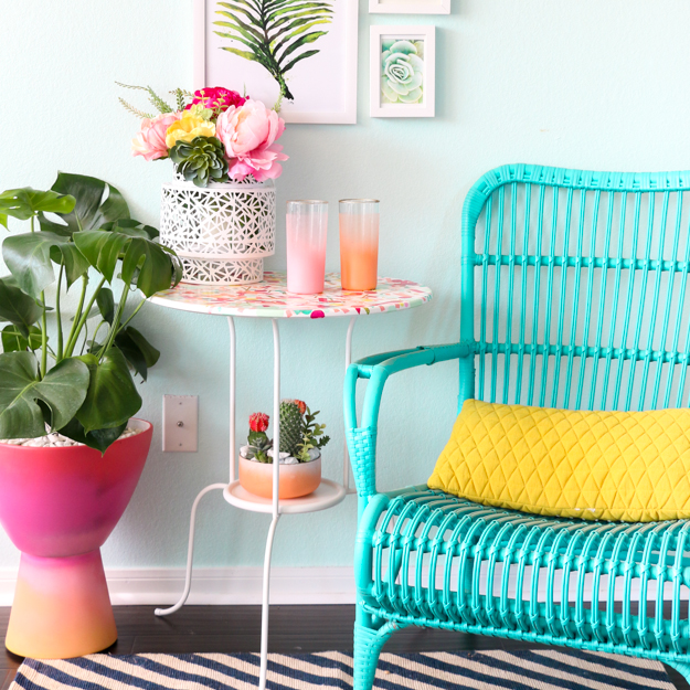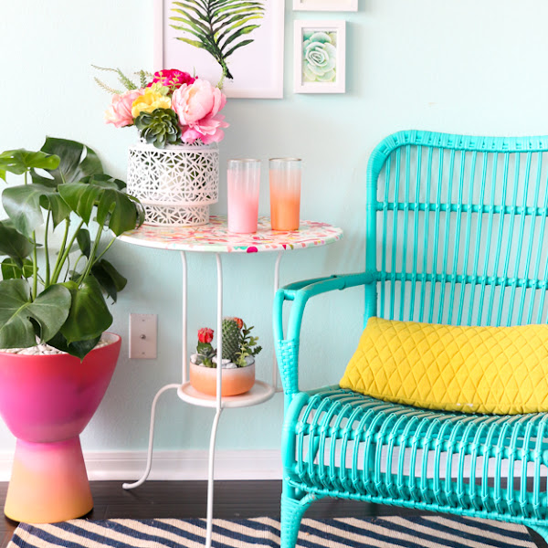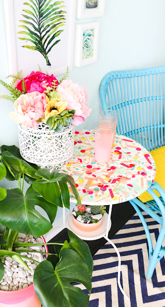 El DIY de esta semana nos lleva directamente a un verano tropical lleno de color y es que aunque aún estamos en primavera por aquí ya huele a VERANO y por eso nada mejor que enseñaros el tuneao de esta mesa de Ikea por menos de 20 (clic) que alegrará cualquier rincón y además es muy fácil de hacer ¿quién se anima?
